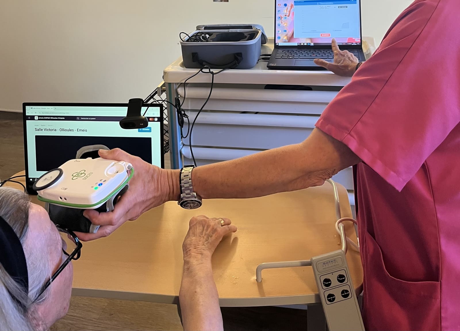 “Les déserts médicaux sont une réalité dans certaines régions françaises et européennes. Dans les situations nécessitant un avis médical ponctuel, un renouvellement d’ordonnance ou une prescription, alors que les résidents n’ont plus de médecin traitant, la télémédecine permet de ne laisser aucun résident en difficulté. Très simple d’utilisation, la mise en service nécessite peu d’équipement : un ordinateur et des outils connectés de première ligne (avec notamment un stéthoscope et otoscope). Naturellement, elle exige la présence d’un ou une infirmier-ère qui assiste le résident en temps réel, par exemple pour la prise de tension artérielle, température, rythme cardiaque, saturation en oxygène. L’intimité du résident et la confidentialité des échanges sont assurées, la téléconsultation pouvant avoir lieu dans la chambre ou dans une salle dédiée.”