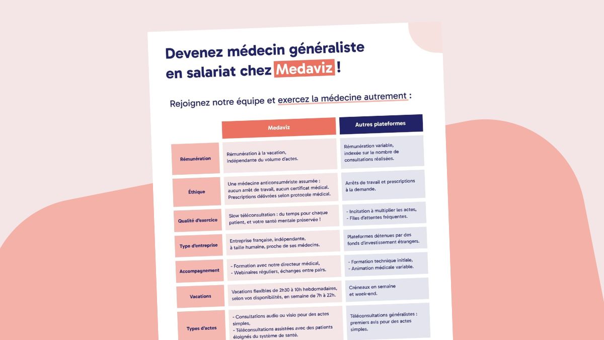 Téléchargez gratuitement notre fiche comparative et découvrez en détail pourquoi de plus en plus de médecins font le choix de Medaviz pour exercer la médecine autrement.