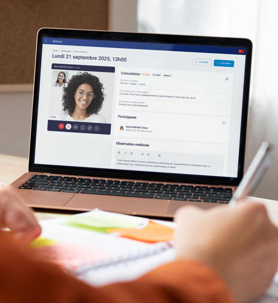 Consultez en vidéo avec vos patients, échangez des documents et encaissez vos actes avec notre logiciel de téléconsultation.