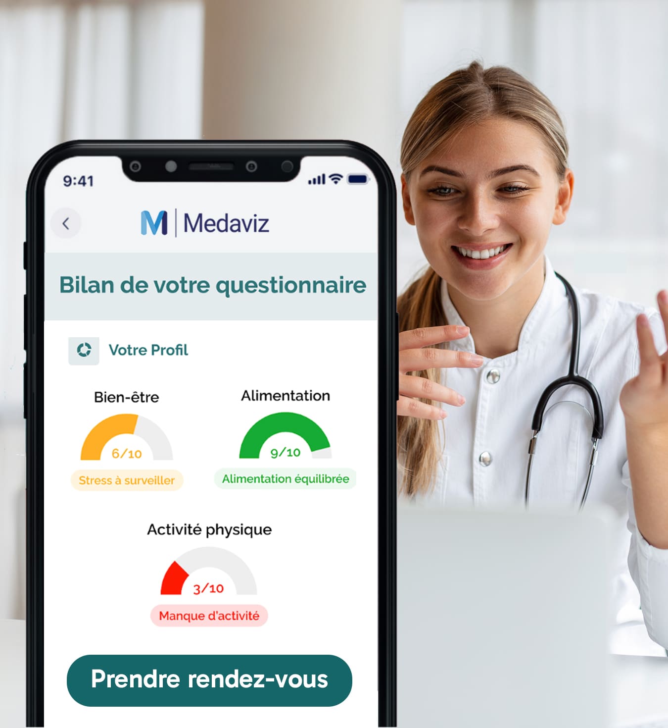 Une téléconsultation de prévention est proposée avec un médecin Medaviz pour réaliser son plan d’action personnalisé, suivi d’un coaching santé afin de l’aider à adopter les meilleurs comportements de santé.